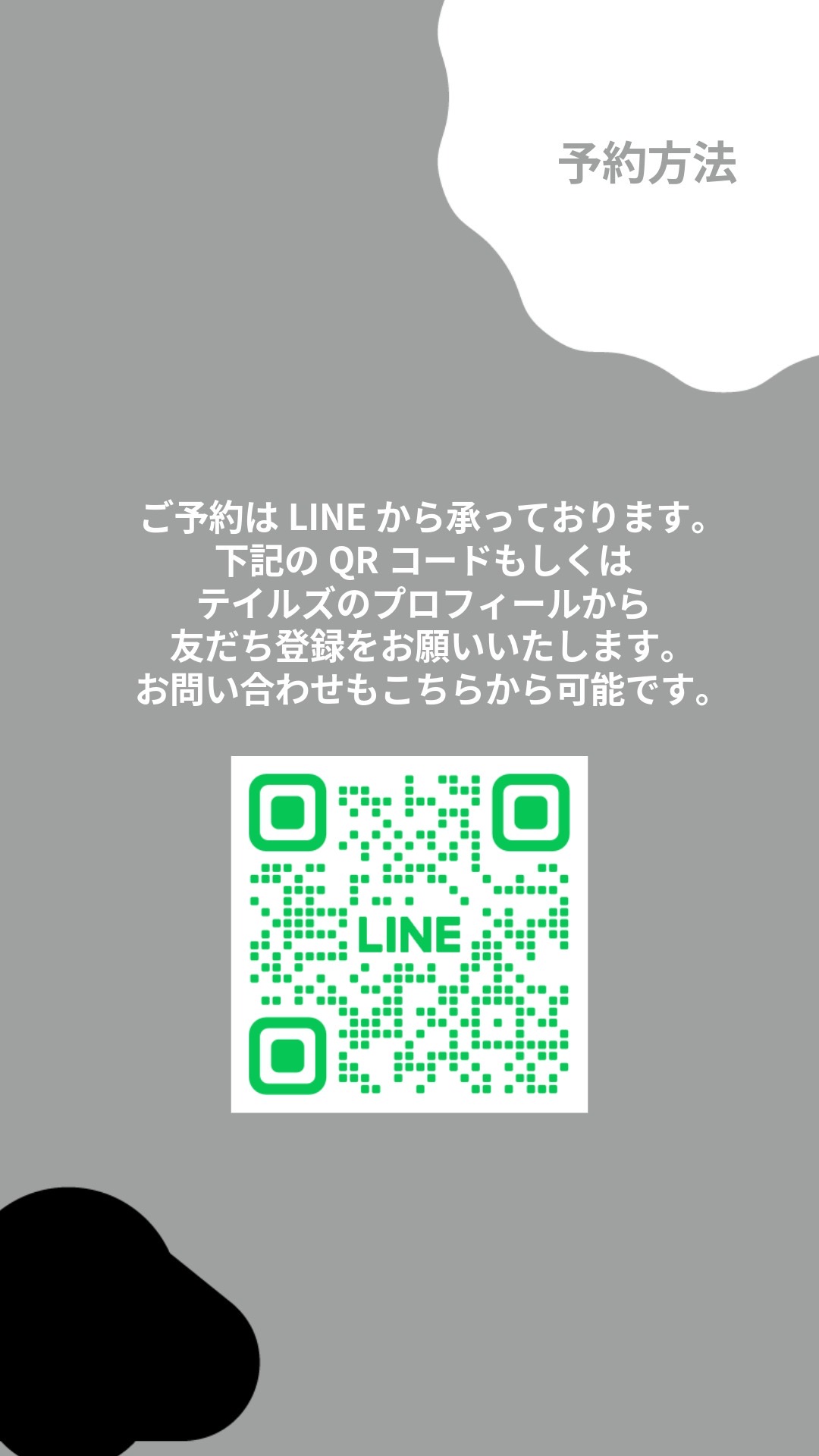 公式LINEより承ります。下記より友達登録をお願いいたします。